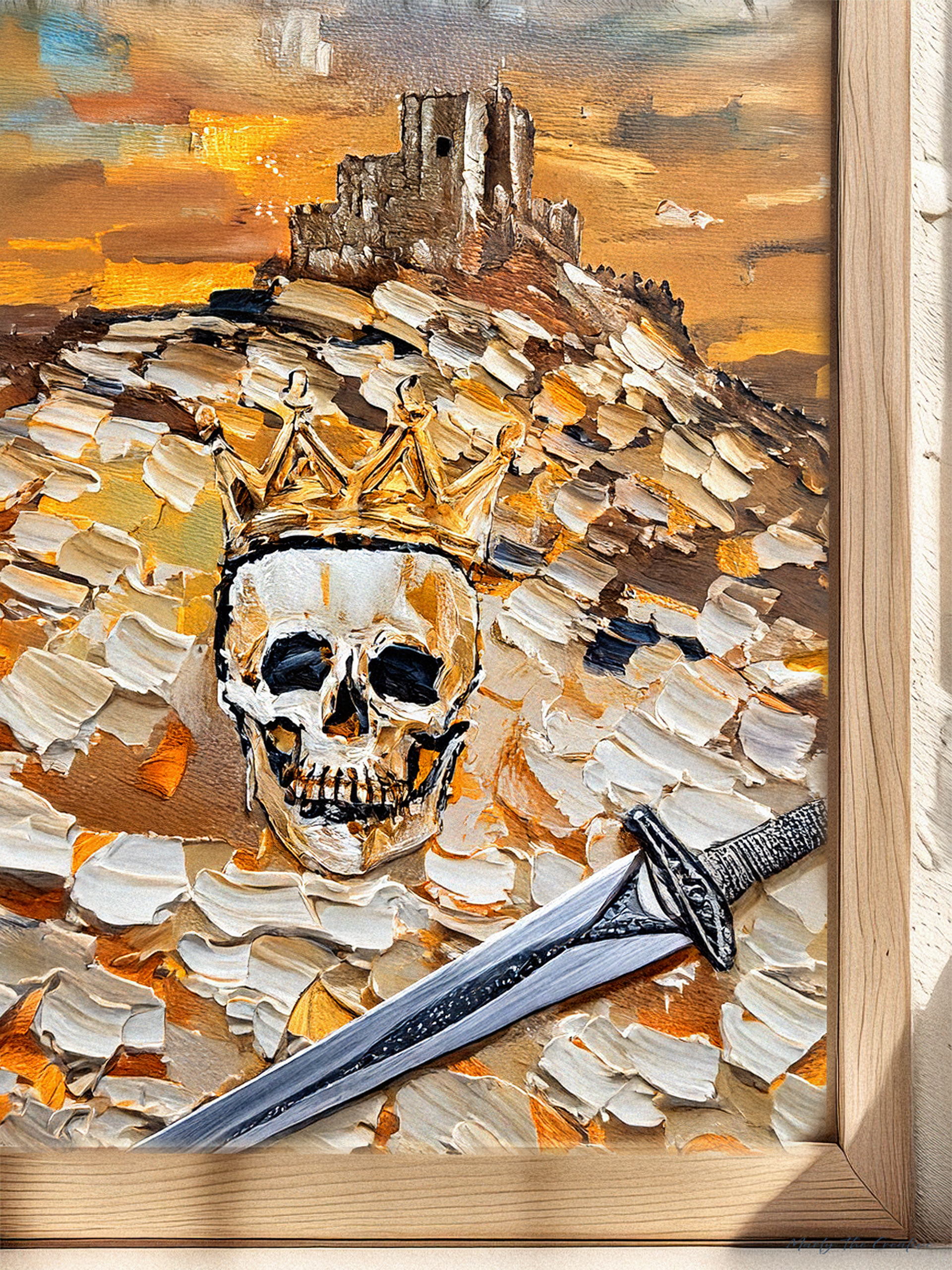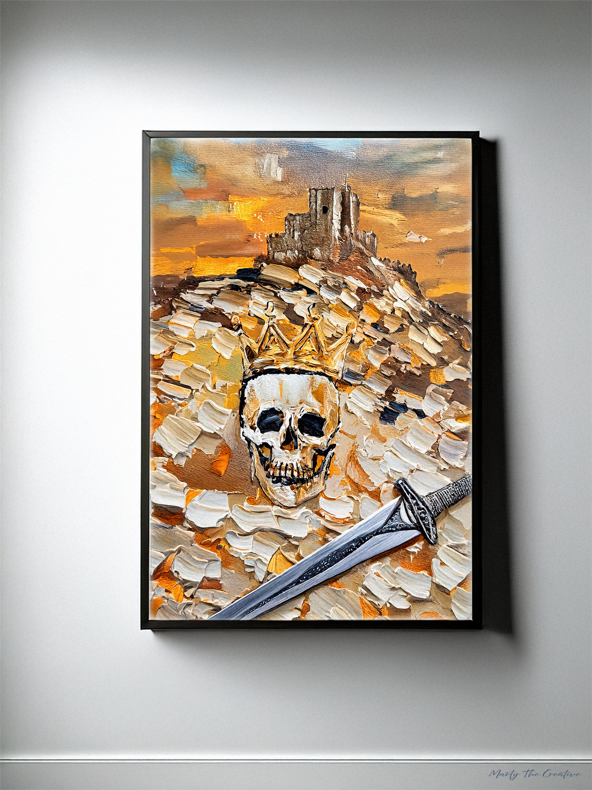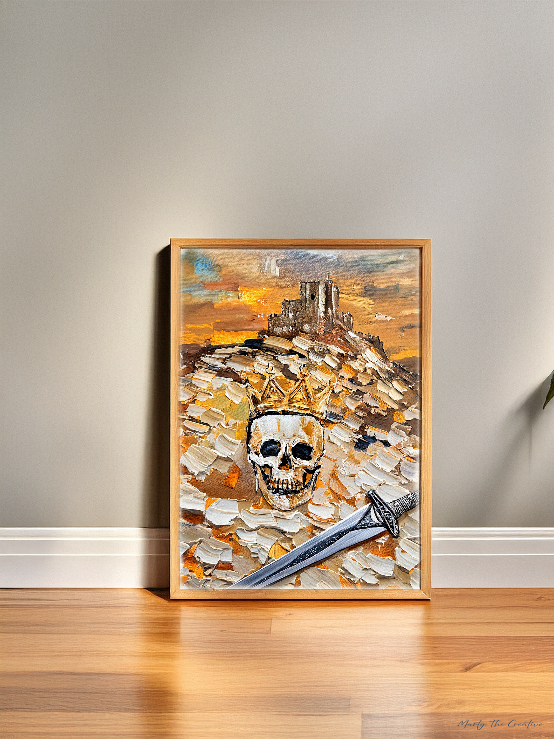 11x17 Print: Printed on high-quality Gloss Paper. This finish makes the dramatic sky, the glint of the sword, and the richness of the crown truly shine, capturing every impactful detail.